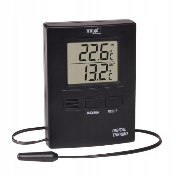 TERMOMETR CYFROWY TFA DOSTMANN Z CZUJNIKIEM KABEL 300M CZARNY