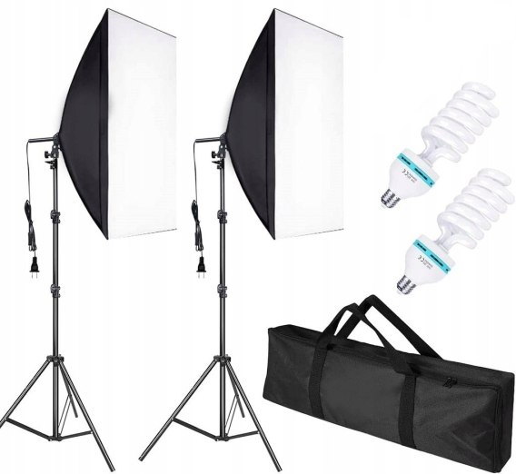 Lampa światła ciągłego przeznaczona jest do stosowania z żarówkami z gwintem E27. Dzięki zastosowaniu żarówek o świetle ciągłym można bardzo precyzyjnie kontrolować oświetlenie przedmiotów, jego natężenie, kierunek i ewentualny rozkład cieni. Softbox wykonany został z najwyższej jakości tworzywa. Od wewnątrz wykończony jest srebrną, odblaskową powierzchnią - nie tylko zapobiega "uciekaniu" światła do tyłu i na boki, ale także odbija je w pożądanym kierunku. Sprawia to, że do fotografowanego obiektu trafia zwielokrotniona ilość światła, rozproszonego przez znajdujący się z przodu materiał dyfuzyjny. Od zewnątrz softbox jest matowo czarny, dzięki czemu nie odbija światła z innych lamp. Statyw oświetleniowy to połączenie stabilności i komfortu może być wykorzystywany w studio jak i w plenerze. Wykonany z wysokiej jakości aluminium. Teleskopowy mechanizm rozkładania minimalizuje wymiary statywu po złożeniu oraz pozwala na jego błyskawiczne rozkładanie lub składanie, dzięki czemu uzyskamy szeroki zakres pracy (regulowany jest płynnie na dowolnej wysokości).