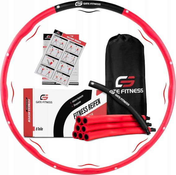 HULA HOOP SKŁADANE FITNESS Z WYPUSTKAMI 76-100CM GATE CZERWONO-CZARNE
