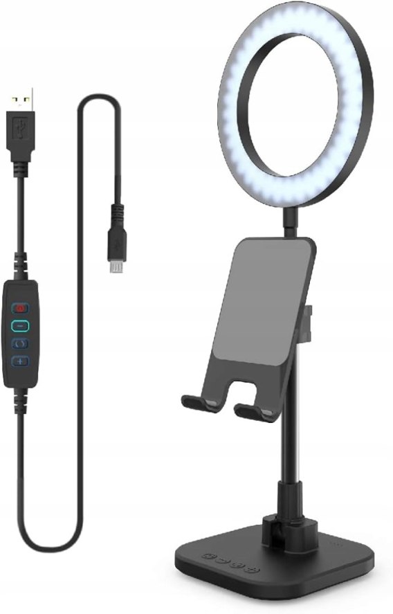 Interaktywna podstawa - baza jest wyposażona w przyciski ON / OFF, przycisk trybów temperatury barwowej, a także przyciski jasności, więc po ustawieniu idealnego ujęcia po prostu użyj przycisków, aby uzyskać osiągalny wygląd i ekspozycję potrzebną bez przerywania lub wyjmowania telefonu lub tabletu z podstawy