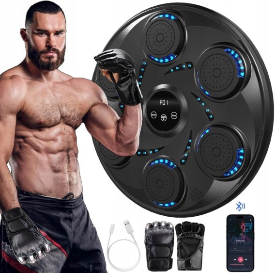 Montowana na ścianie maszyna bokserska z LED i Bluetooth. 9 trybów prędkości, licznik uderzeń. Idealna do treningu w domu dla dzieci i dorosłych.