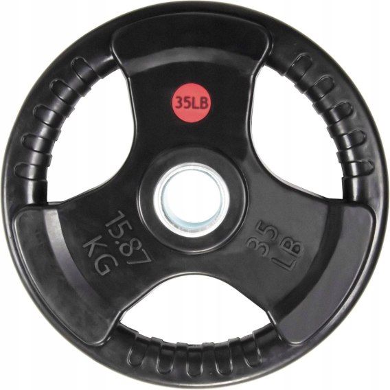 Wykonane z litego żeliwa pokrytego gumą, z 2-calowym otworem centralnym, pasują do każdego gryfu olimpijskiego o średnicy 2 cali. Każdy talerz posiada stalową wkładkę, co zapewnia długą żywotność. Gumowana powłoka zapewnia łatwy chwyt i długą żywotność.