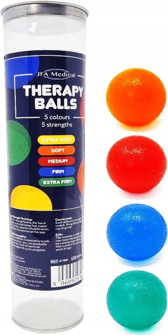 Zestaw 4 piłek terapeutycznych w kształcie jajka to idealne narzędzie do ćwiczeń dłoni, wzmacniania chwytu, redukcji stresu i rehabilitacji. Sprawdza się w treningu siłowym, fizjoterapii, terapii pourazowej oraz jako gadżet antystresowy.