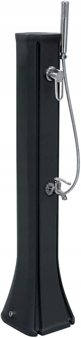 Ciesz się w 100% ekologicznym prysznicem przed i po skorzystaniu z basenu: Korzystanie z prysznica solarnego pomaga zachować higienę basenu i ograniczyć jego obróbkę chemiczną bez inwestowania w drogie urządzenie. Dzięki kompaktowej i wyrafinowanej konstrukcji dopasowuje się do wszystkich ogrodów: wykonany z polietylenu HD, idealnie dopasowuje się do każdego rodzaju elewacji. Bardzo praktyczny, wyposażony jest w baterię, wyjmowaną główkę prysznicową i durszlak. Przyjazny dla środowiska: ten prysznic słoneczny wykorzystuje energię słoneczną do podgrzewania wody zawartej w całym obiekcie. Wystarczy zwykła armatura zimnej wody, energia słoneczna zrobi resztę, aby zapewnić ciepłą wodę od pierwszych dni dobrej pogody.