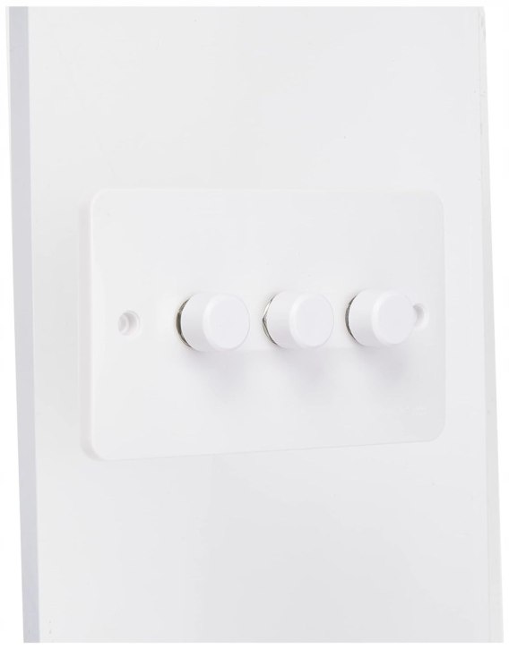 Schneider Electric Lisse White Moulded - 3 Gang 2 Way Dimmer Light Switch to przełącznik światła z regulacją natężenia oświetlenia, przeznaczony do użytku w instalacjach elektrycznych