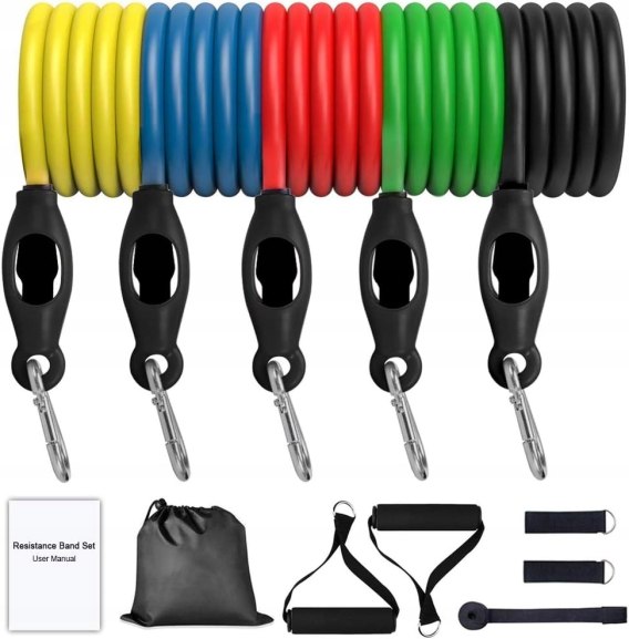 Z tymi gumami oporowymi wykonasz wiele ćwiczeń fizycznych bez wychodzenia z domu. Zadbasz o każdy mięsień w swoim ciele. Specjalna kotwica umożliwia zamontowanie gum na drzwiach, a pasy na kostki pozwalają ćwiczyć dolne partie mięśni. Dzięki dołączonemu woreczkowi, bez problemu zabierzesz je ze sobą na siłownię, czy wakacyjny wyjazd. Wielu sportowców wykorzystuje gumy oporowe na co dzień. Dzięki różnemu oporowi każdej gumy, możesz dowolnie regulować trudność treningu zależnie od stopnia zaawansowania i ćwiczonej partii mięśni.