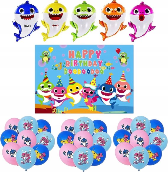 ZESTAW BALONÓW URODZINOWYCH 5x BALON FOLIOWY REKIN +12
